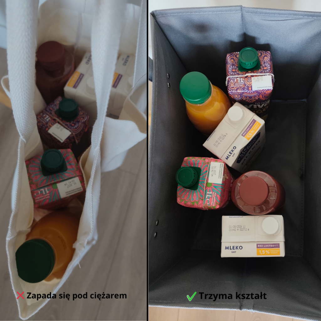 Zwykłe torby się zapadają. Zakupy się gniotą. Wystarczy jeden mocniejszy hamulec.